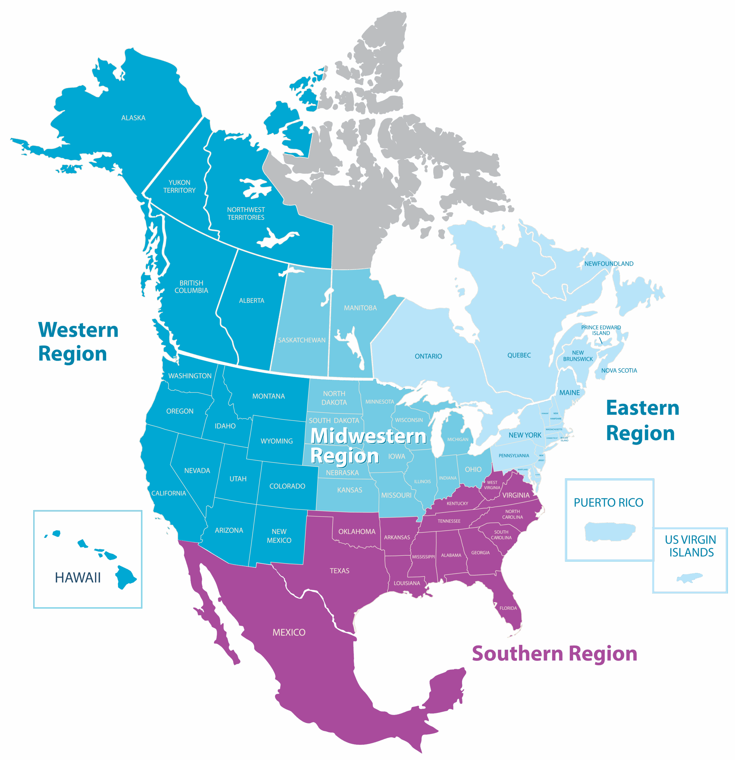 The Eastern Region consists of Connecticut, Delaware, District of Columbia, Maine, Maryland, Massachusetts, New Hampshire, New Jersey, New York, Pennsylvania, Puerto Rico, Rhode Island, Vermont, The U.S. Virgin Islands, and the Canadian Provinces of New Brunswick, Newfoundland, Nova Scotia, Prince Edward Island, Ontario, and Quebec.